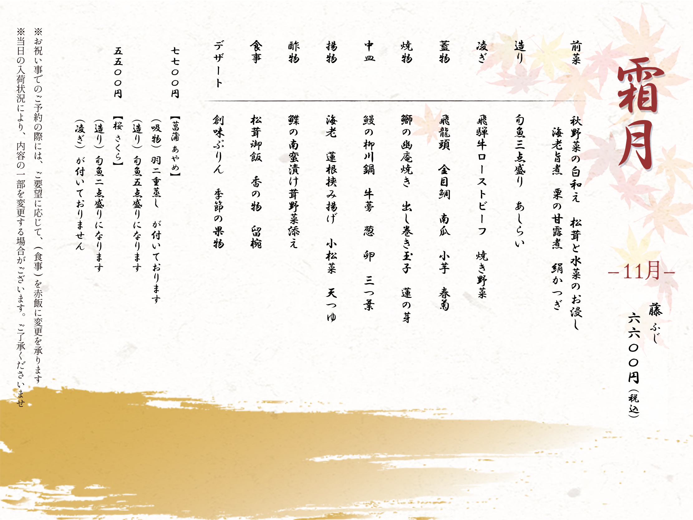土瓶蒸しや松茸ご飯など、奥深い日本の秋をご堪能ください。
