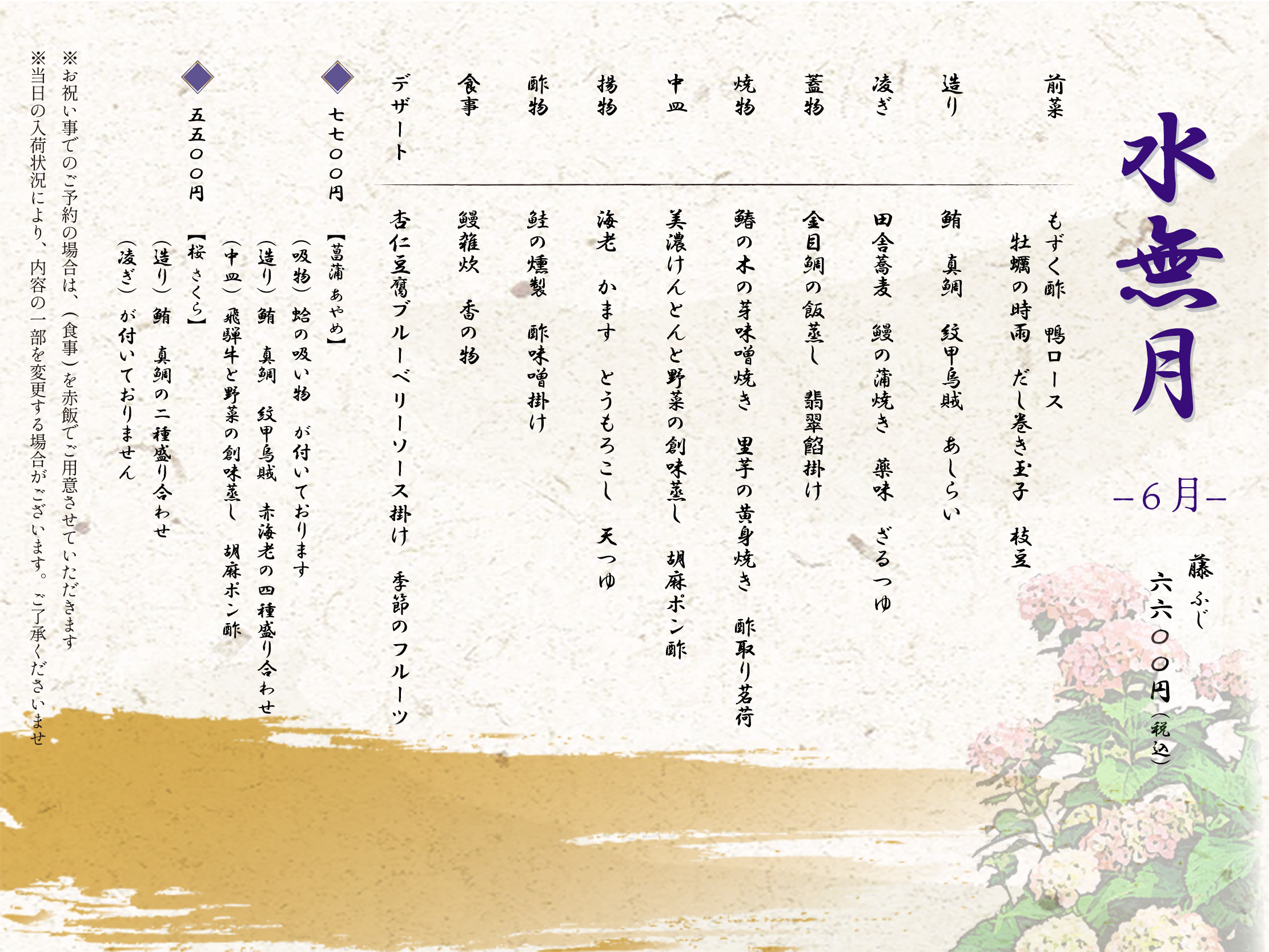 厳選した旬の素材を用いた会席料理をご用意いたしました。